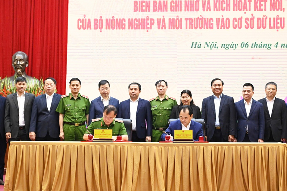 The Ministry of Agriculture and Environment (MoAE) signed a memorandum of understanding with the Ministry of Public Security (MoPS) in Hanoi on April 6 to connect and integrate its databases with the MoPS’s National Integrated Data Centre (C12).