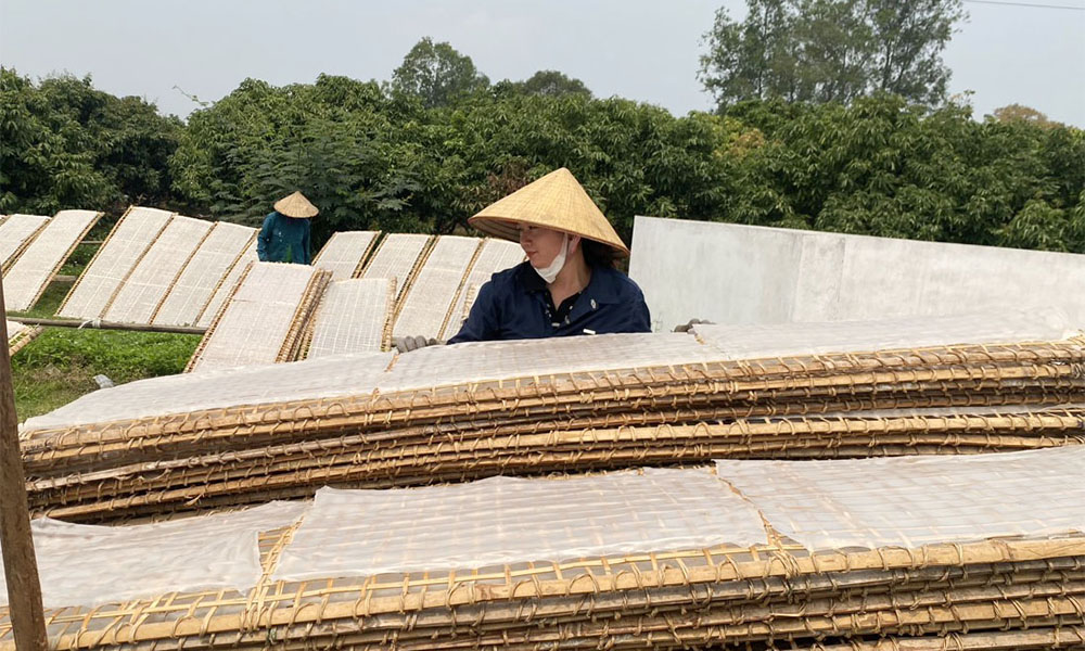 Hoạt động sản xuất mỳ gạo tại Hợp tác xã Sản xuất và Tiêu thụ mỳ Chũ Nam Thể (thị xã Chũ). |