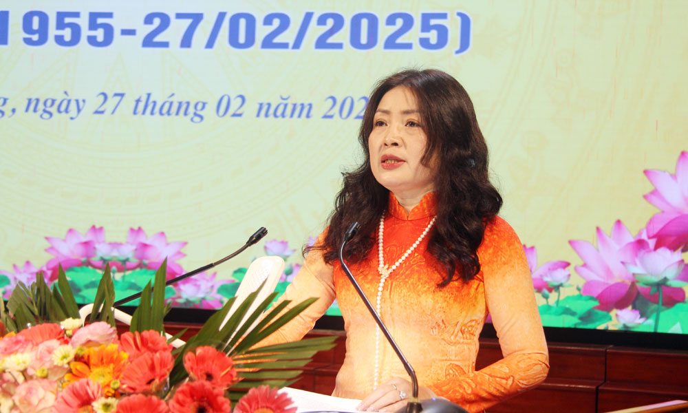 Đồng chí Nguyễn Thị Thu Hương, Giám đốc Sở Y tế trình bày diễn văn kỷ niệm. |