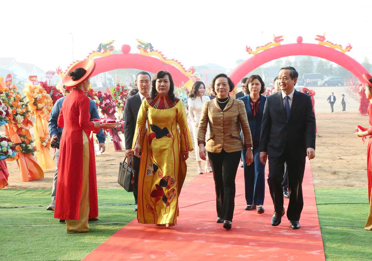 Deputy Prime Minister Pham Thi Thanh Tra and other officials attend the groundbreaking ceremony for the second phase of the Que Vo II Industrial Park infrastructure development project on December 19. |