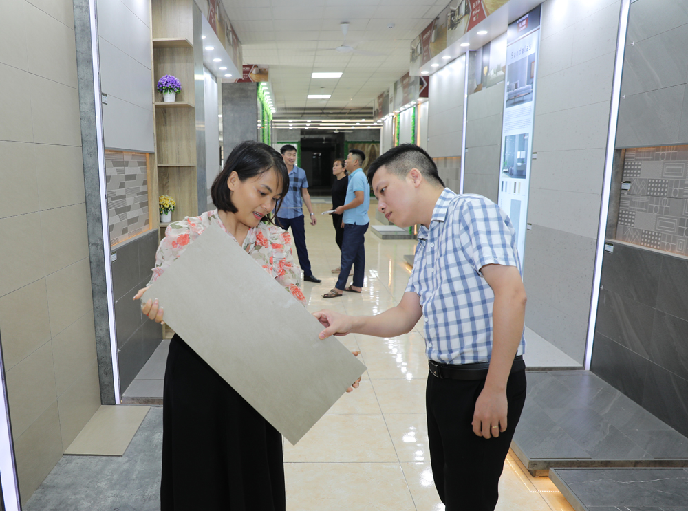 Khi mua sản phẩm của đơn vị, ngoài khuyến mại công vận chuyển, khách hàng được tặng ke nhựa, keo chít mạch và cắt gạch ốp chân tường. Bên cạnh đó, doanh nghiệp còn bảo hành sản phẩm, nhận lại gạch thừa, phục vụ 24/24 giờ. Với cách làm hiện tại, Công ty đã xây dựng cho mình lượng khách hàng ngày một lớn tại địa bàn tỉnh Bắc Ninh và Lạng Sơn. Anh Hoàng Quốc Việt, Phó Giám đốc Công ty cho biết: “Hiện mỗi tháng đơn vị tiêu thụ khoảng 35 nghìn m2 gạch quy tiêu chuẩn, tương ứng hơn 6 tỷ đồng. Thời gian tới, đơn vị sẽ tập trung sâu vào khâu makerting, tích cực quảng cáo sản phẩm trên các mạng xã hội: Zalo, Tiktok, Facebook để thu hút nhiều hơn lượng khách hàng ở khu vực nông thôn”.