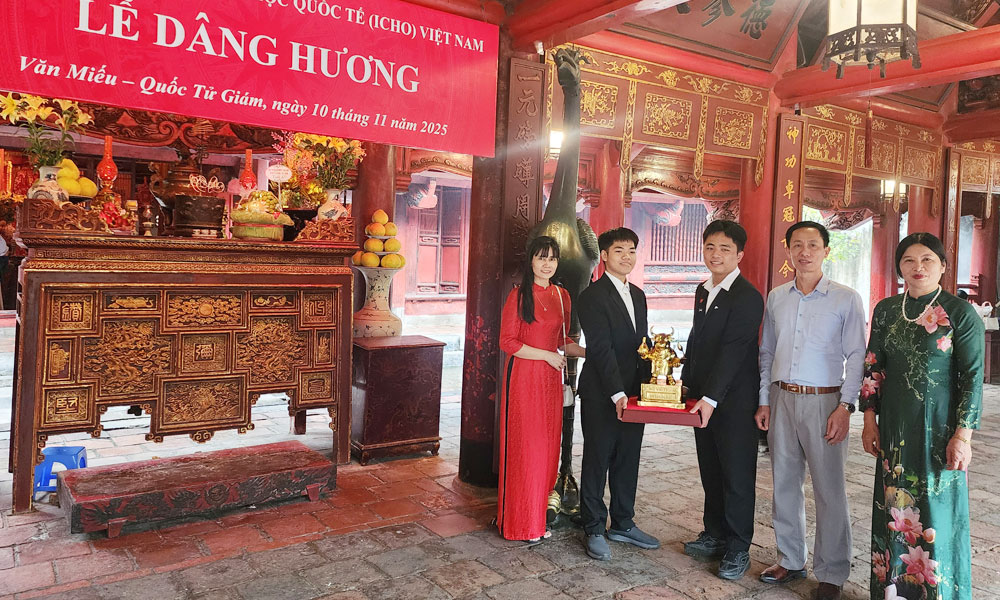 BAC NINH - At the Temple of Literature, Vietnam’s national center for education and talent, the Vietnamese International Chemistry Olympiad (IChO) team, led by Associate Professor Nguyen Thi Thu Ha of Hanoi University of Science and Technology on November 10 offered incense and presented the team’s “Golden Buffalo” mascot to Bac Ninh High School for the Gifted.