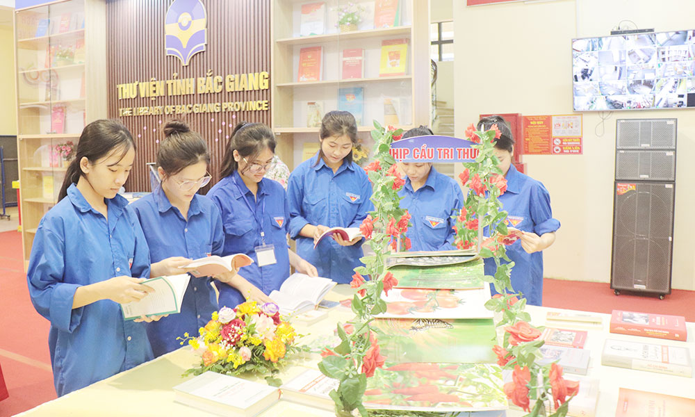 Students visit the exhibition area of books and newspapers at Bac Ninh Library No. 1. |