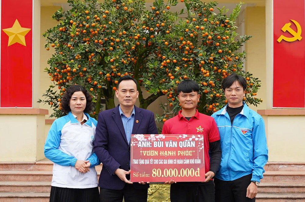 BAC NINH - Bui Van Quan, born in 1992 and owner of the “Happy Garden” in Hop Thinh commune, Bac Ninh province, has donated 200 million VND (about 8,800 USD) to the Vietnam Fatherland Front Committee and Youth Union organisations in the communes of Hop Thinh, Hoang Van, Xuan Cam and Hiep Hoa to provide Lunar New Year gifts for poor and disadvantaged households.