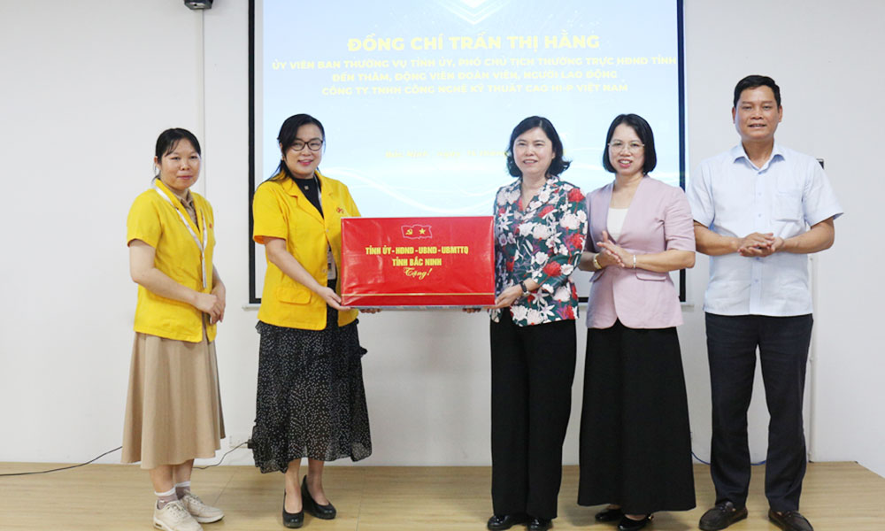 BAC NINH - A provincial delegation led by Tran Thi Hang, Standing Vice Chairwoman of the Bac Ninh People’s Council, visited and encouraged trade union members and workers at HI-P High Tech Vietnam Co., Ltd. in the Nam Son–Hap Linh Industrial Park on April 14.
