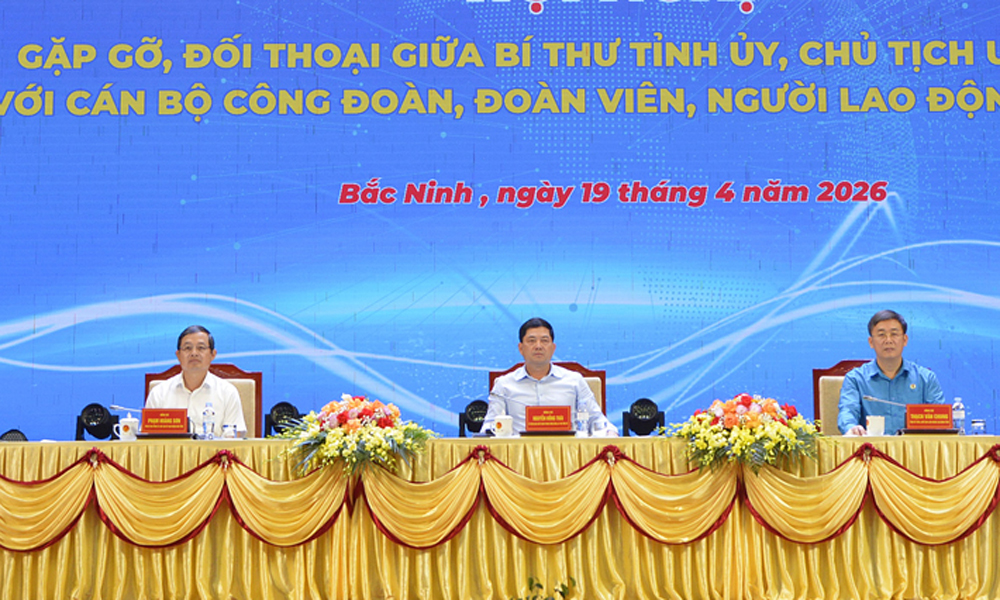 BAC NINH - Nguyen Hong Thai, member of the Party Central Committee and Secretary of the provincial Party Committee, and Pham Hoang Son, Deputy Secretary of the provincial Party Committee and Chairman of the provincial People’s Committee, on April 19 co-chaired a dialogue with trade union officials and members, and workers in Bac Ninh province.