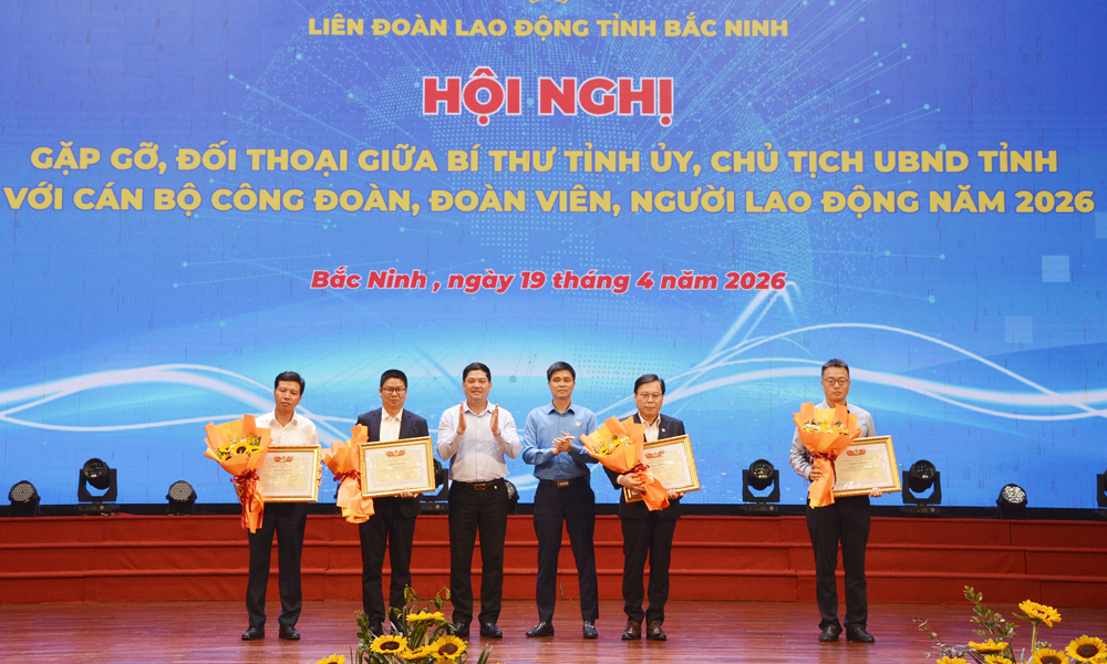 At the dialogue, the provincial Labour Federation honoured four exemplary enterprises and four outstanding entrepreneurs for workers in 2026; awarded certificates to four banks actively supporting the trade union and workers in Bac Ninh; and presented gifts to 100 workers from enterprises in the province.