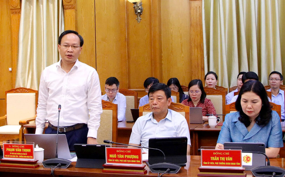 Vice Chairman of the provincial People’s Committee Pham Van Thinh speaks at the meeting. |