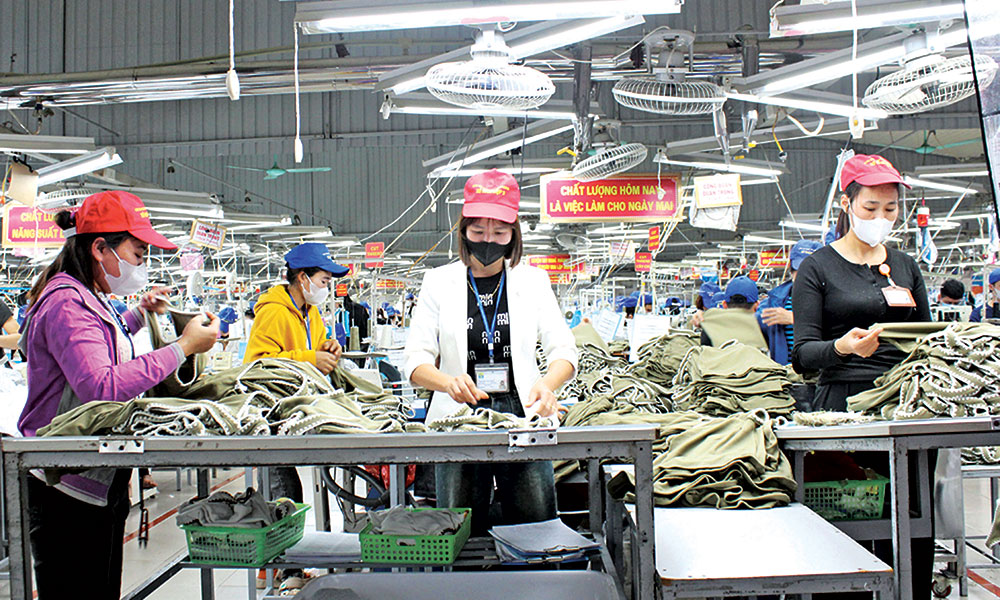 A production line at Ha Phong Garment Export Joint Stock Company in Hiep Hoa commune. |