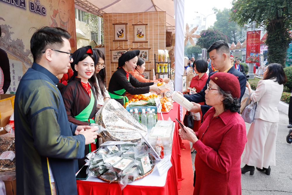 Visitors browse and purchase products at the Bac Ninh province booth. |