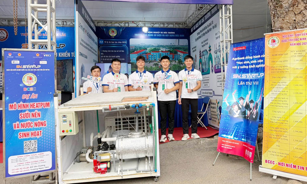 BCEC was the only representative from Bac Ninh province, participating with three projects. These included “EV SMARTCARE”, a home-based electric vehicle maintenance service aligned with the green transition trend; a “Smart Parking System” aimed at improving urban management and reducing traffic pressure; and a “Heat pump system for underfloor heating and domestic hot water” designed to enhance energy efficiency and environmental sustainability.