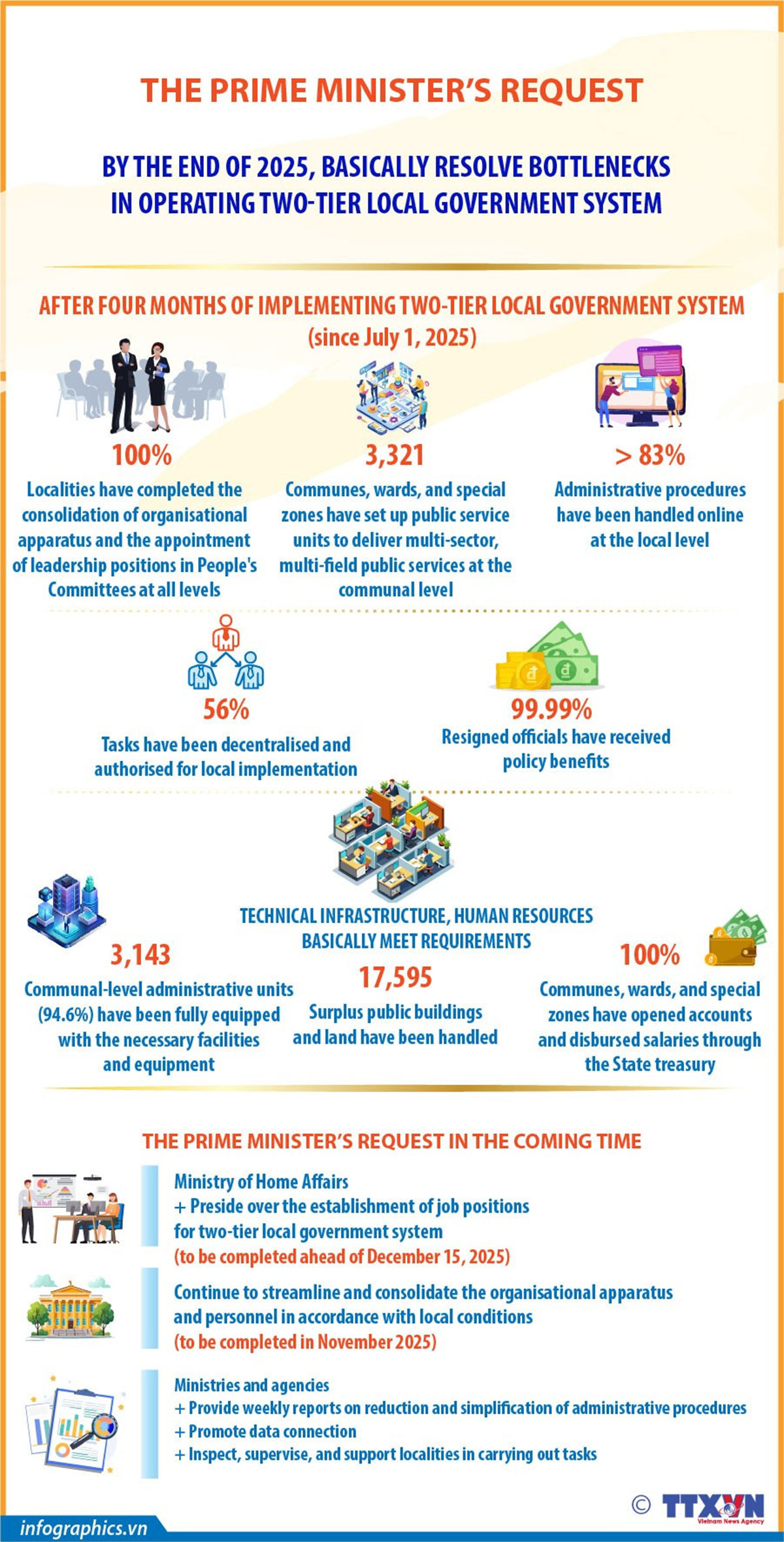 The Prime Minister has requested that by the end of 2025, bottlenecks in the operation of the two-tier local government system must be basically resolved.