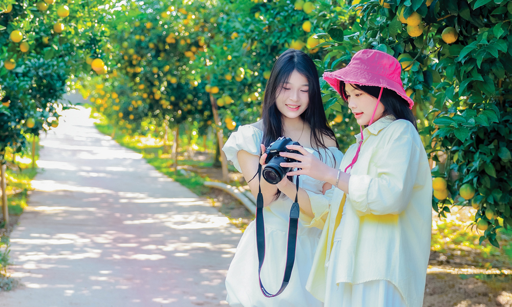An orange farm in Cau Dat Hamlet, Phuong Son Ward is a popular destination for many tourists. |