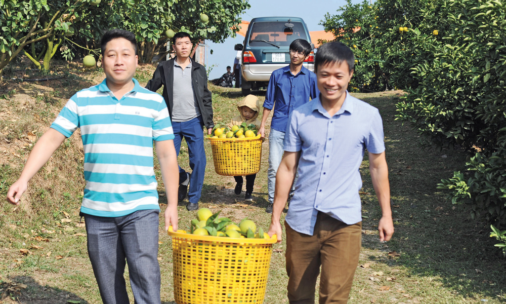 Tourists visit orange orchard of Nguyen Van Huu in Chu Ward. |