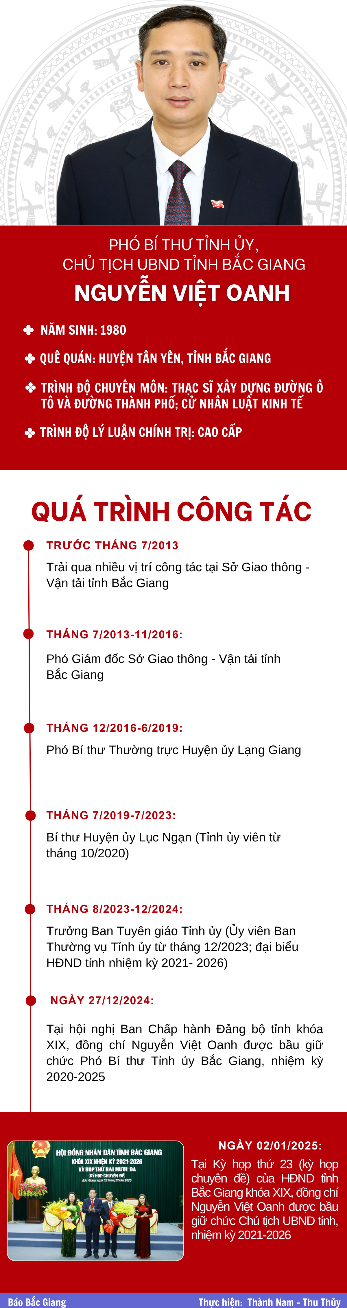 Chân dung đồng chí Nguyễn Việt Oanh, Phó Bí thư Tỉnh ủy, Chủ tịch UBND tỉnh Bắc GiangUpdated: 11:35, 02/01/2025 Shares: Tags: # tin tức bắc giang# chủ tịch UBND tỉnh Bắc Giang# đồng chí Nguyễn Việt Oanh# nhiệm kỳ 2021-2026chan-dung-dong-chi-nguyen-viet-oanh-pho-bi-thu-tinh-uy-chu-tich-ubnd-tinh-bac-giang-postid410516.bbg Reader's comments (0) Your comment... Send