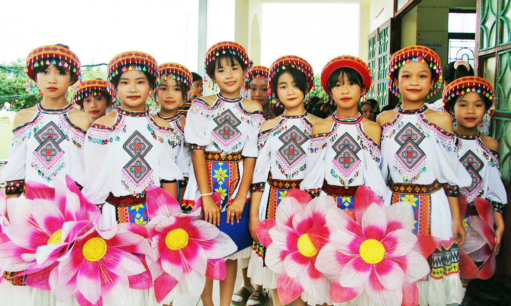 Học sinh Trường Tiểu học Đèo Gia biểu diễn văn nghệ chào mừng. |