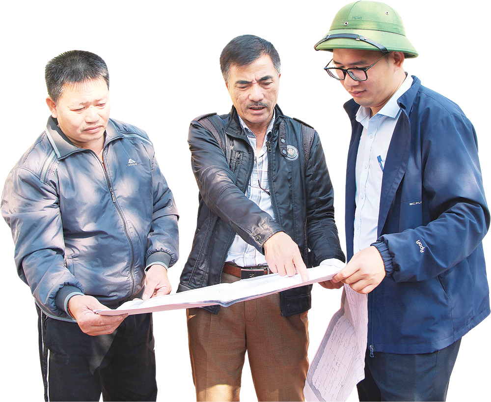 Officials from the provincial Land Fund Development Center, together with leaders of Trinh Khe village in Trung Chinh commune, explain land clearance and compensation policies to local residents as part of land acquisition for the project. |