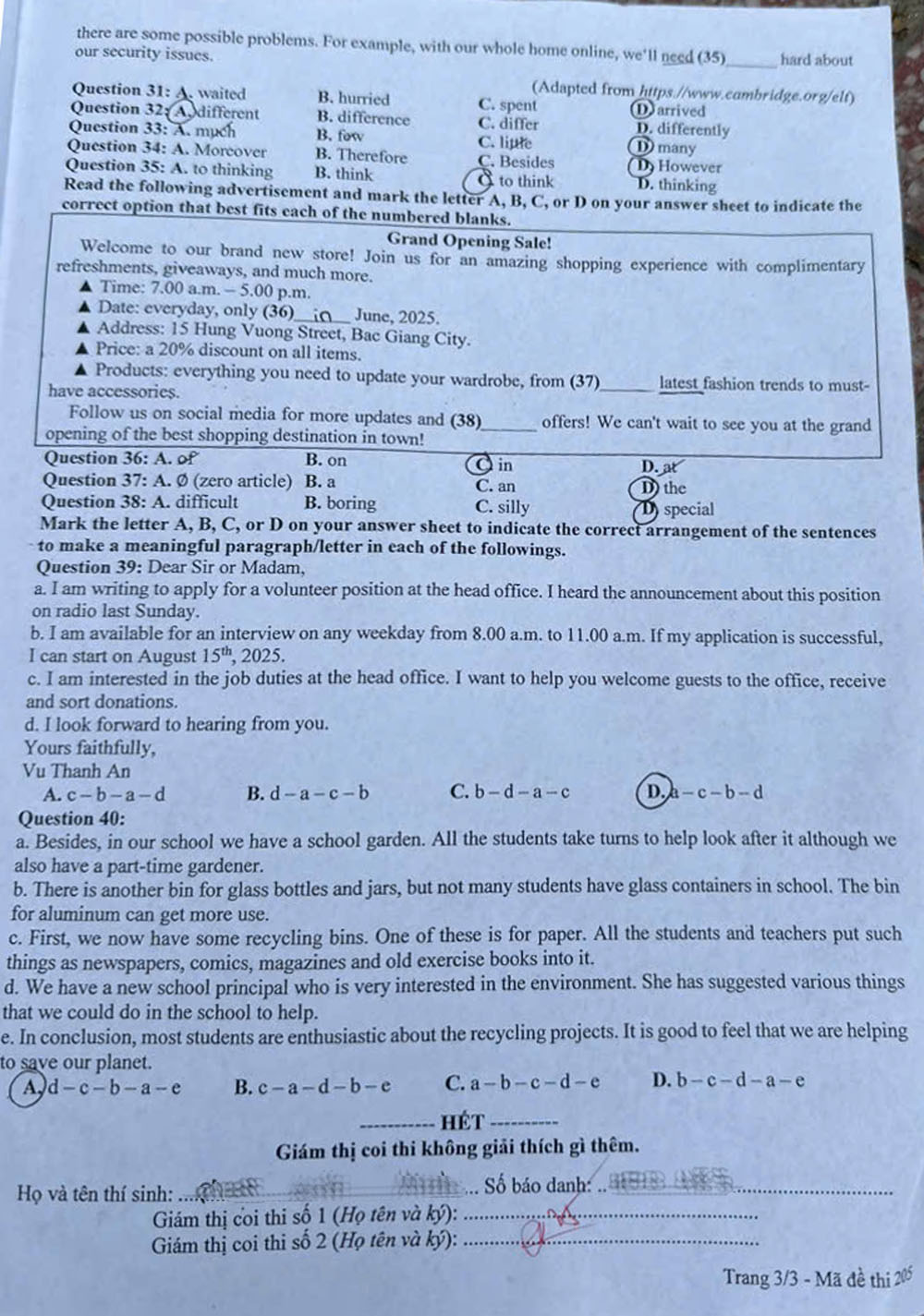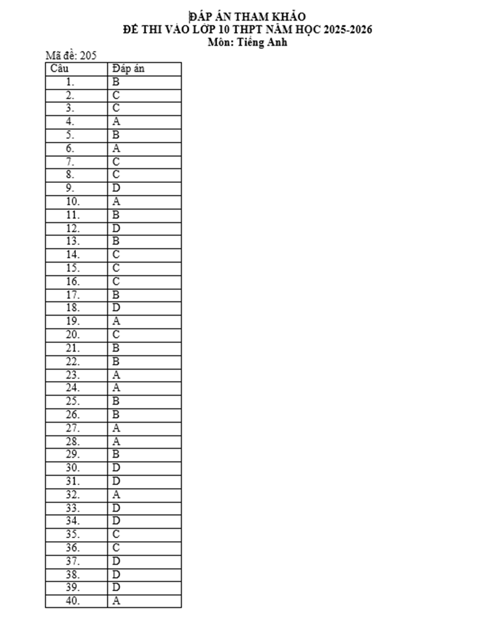 BẮC GIANG - Kết thúc môn Tiếng Anh tại kỳ thi tuyển sinh vào lớp 10 trung học phổ thông năm học 2025-2026, cô giáo Nguyễn Thị Hà, giáo viên môn Tiếng Anh, Trường Trung học cơ sở Dĩnh Kế (thành phố Bắc Giang) đã có gợi ý đáp án tham khảo mã đề 205.
