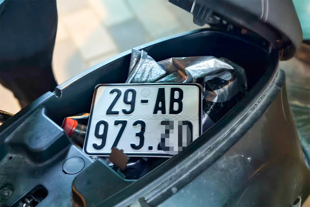 Một tài xế xe máy còn giấu biển kiểm soát vào cốp xe. |