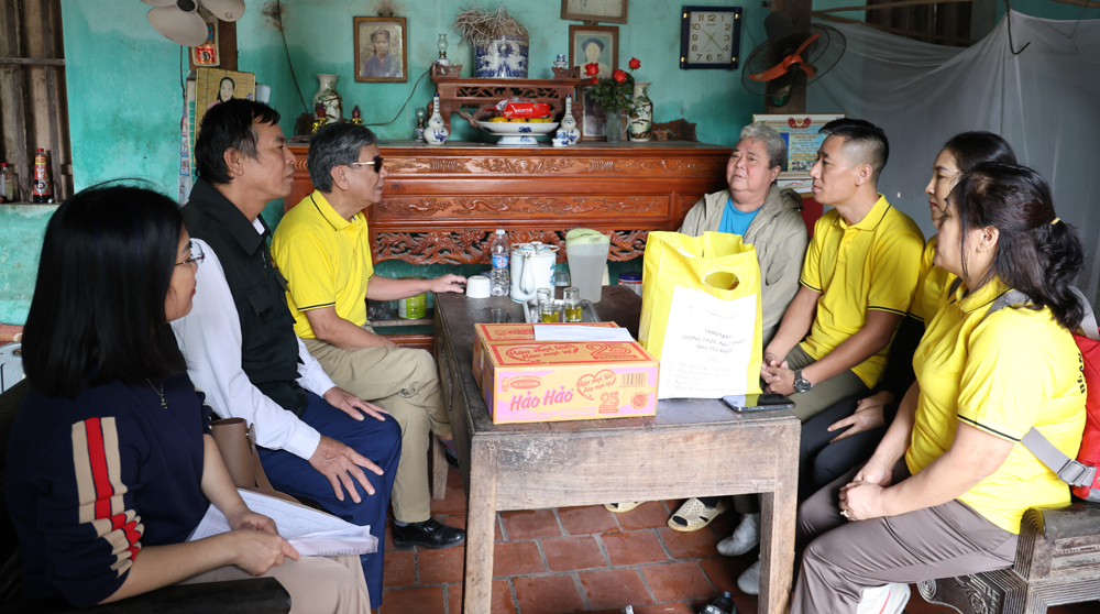 Đoàn công tác đến thăm, trao quà cho gia đình ông Nguyễn Văn Hải ở thôn Cổng Phèn, xã Mỹ Thái. |
