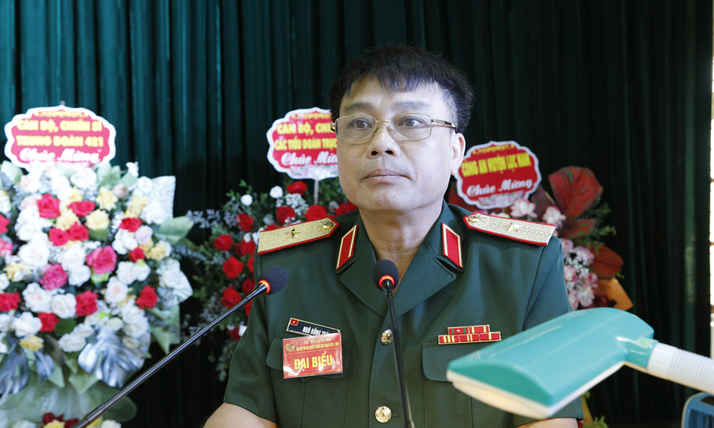 | Thiếu tướng Ngô Hồng Thái phát biểu tại Đại hội. |