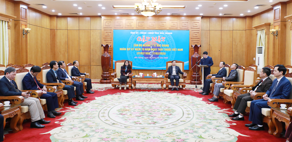 BẮC GIANG - Chiều 26/2, tại Văn phòng UBND tỉnh, Tỉnh ủy, HĐND, UBND tỉnh Bắc Giang tổ chức gặp mặt, chúc mừng cán bộ ngành Y tế nhân kỷ niệm 70 năm Ngày Thầy thuốc Việt Nam 27/2 (1955-2025).