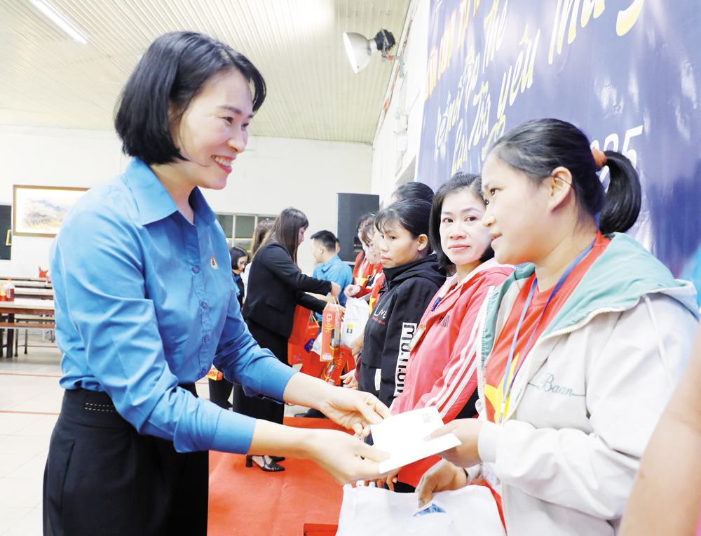 Leader of the Ha Phong Export Garment JSC trade union presents Tet gifts to disadvantaged union members. |