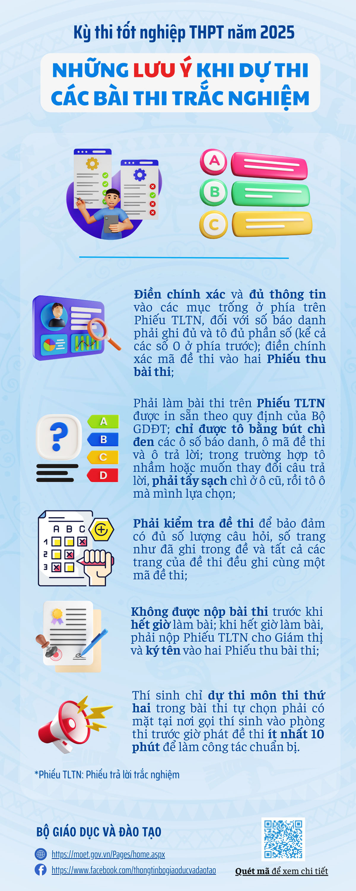 Nhiều nội dung thí sinh cần lưu ý khi làm bài thi trắc nghiệm trong Kỳ thi tốt nghiệp trung học phổ thông năm 2025.