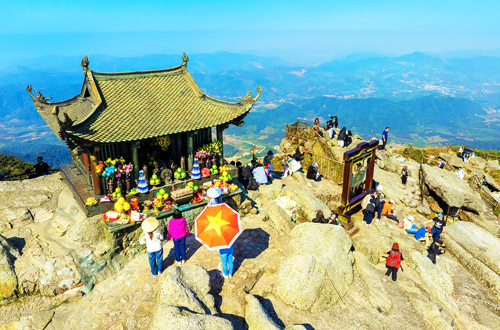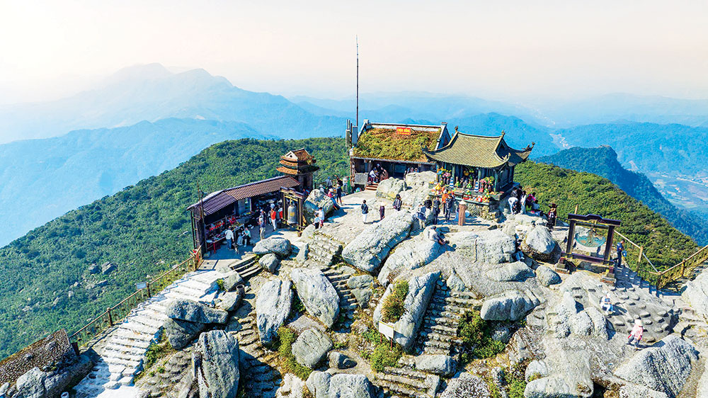 Pilgrims stand on the sacred peak of Yen Tu. |