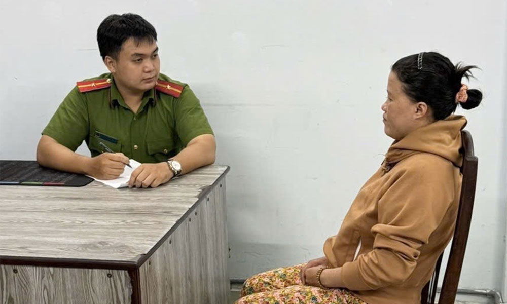 Cảnh sát lấy lời khai Hồ Thị Xuân. Ảnh: Công an cung cấp. |