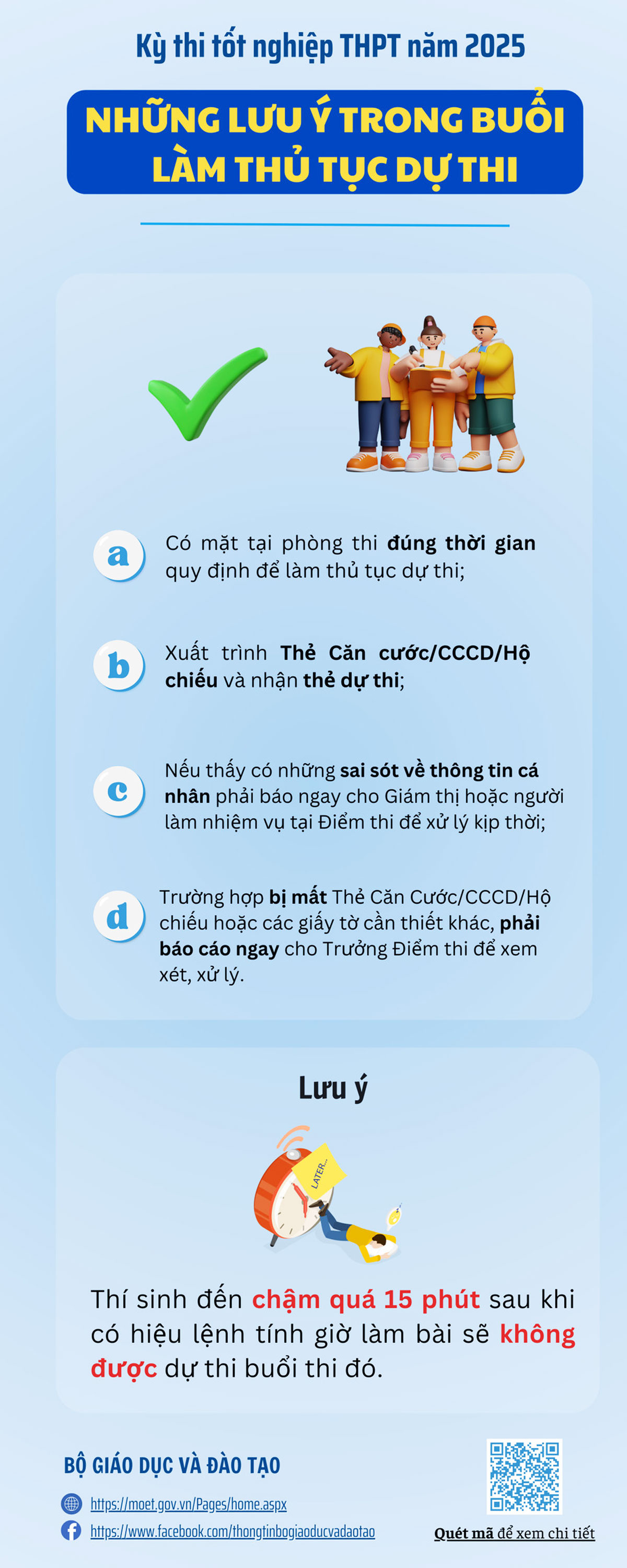 Bộ Giáo dục và Đào tạo lưu ý với thí sinh trong buổi làm thủ tục dự thi, Kỳ thi tốt nghiệp trung học phổ thông năm 2025.