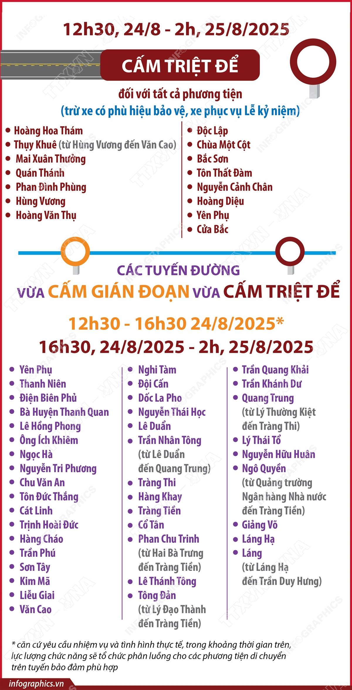 Để bảo đảm trật tự, an toàn giao thông, phòng ngừa ùn tắc giao thông, tạo thuận lợi, phục vụ nhu cầu đi lại của Nhân dân và các hoạt động phục vụ chương trình Tổng hợp luyện lần 2, Công an thành phố Hà Nội thông báo phân luồng giao thông và tổ chức hướng đi đối với các phương tiện.