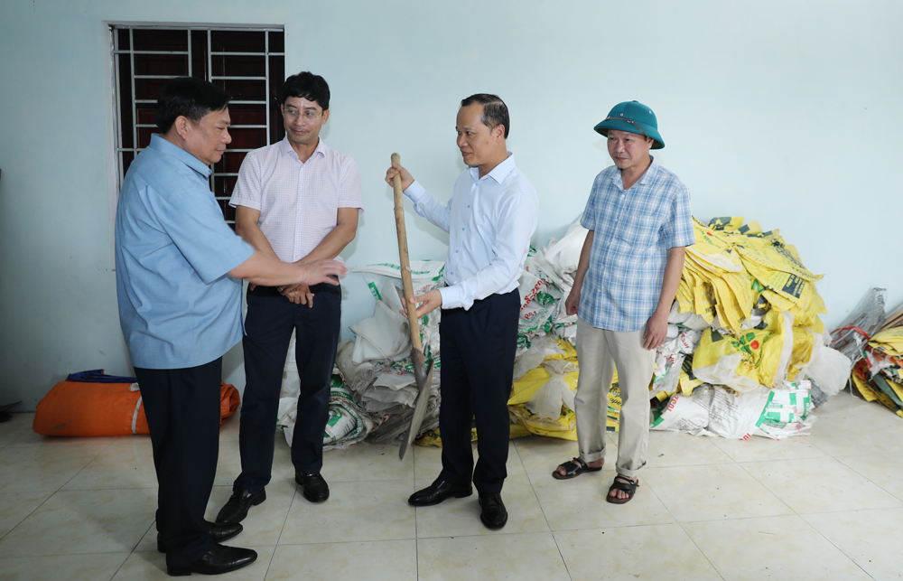 Đồng chí nhấn mạnh và lưu ý lãnh đạo địa phương, trong phòng, chống bão lũ phải đặt mục tiêu bảo đảm an toàn tính mạng và tài sản cho Nhân dân lên hàng đầu; phải có sự phối hợp, linh hoạt giữa ngành Nông nghiệp và Môi trường với các địa phương trong việc sử dụng kho vật tư phòng, chống lụt bão khi có sự cố xảy ra. Bởi trước đây, kho dự trữ này thuộc sự quản lý của UBND thị xã Thuận Thành (cũ).