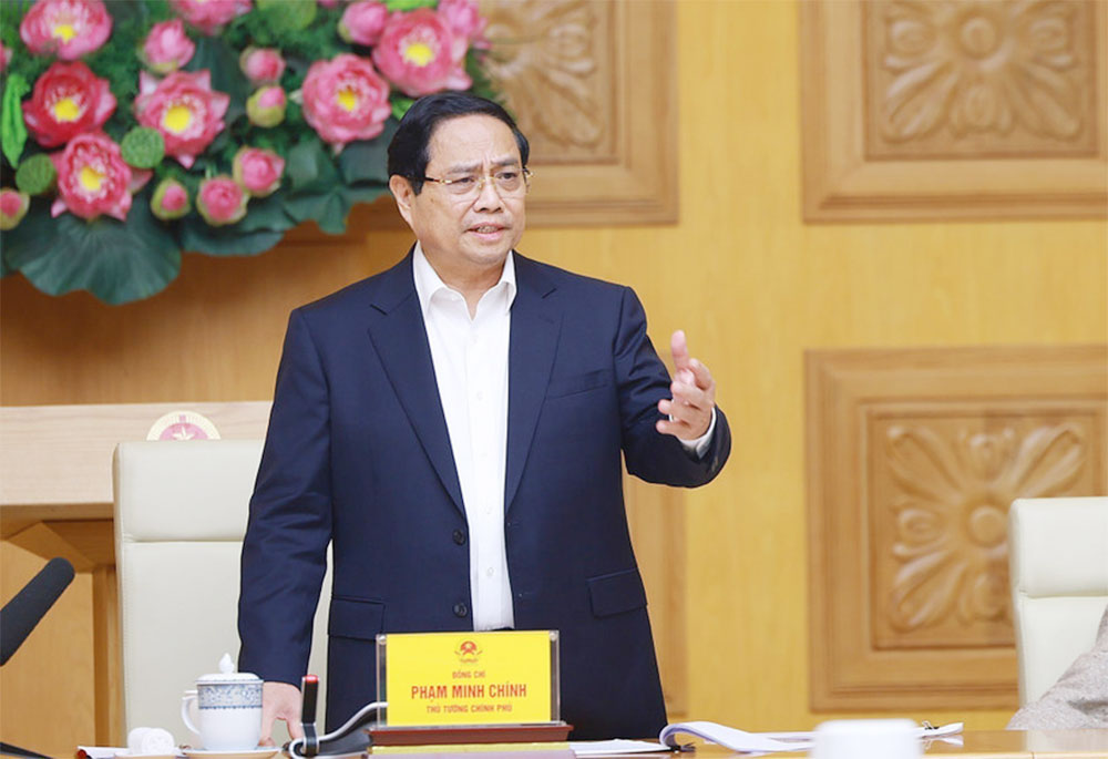 Prime Minister Pham Minh Chinh speaks at the meeting. |