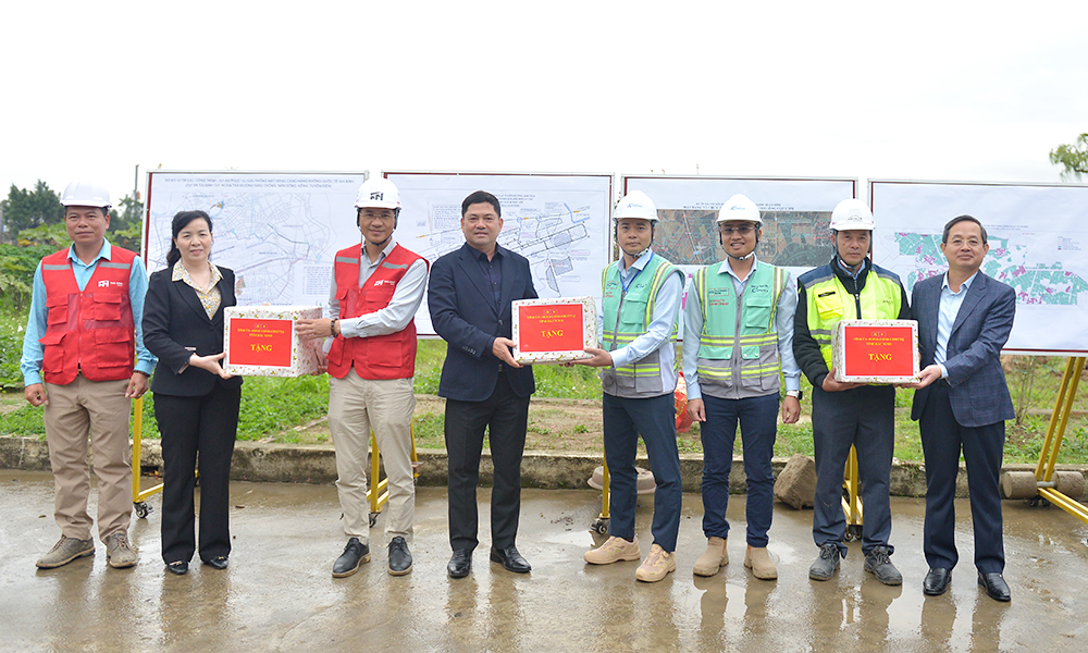 The provincial leaders visit construction sites and present gifts to contractors and workers. |