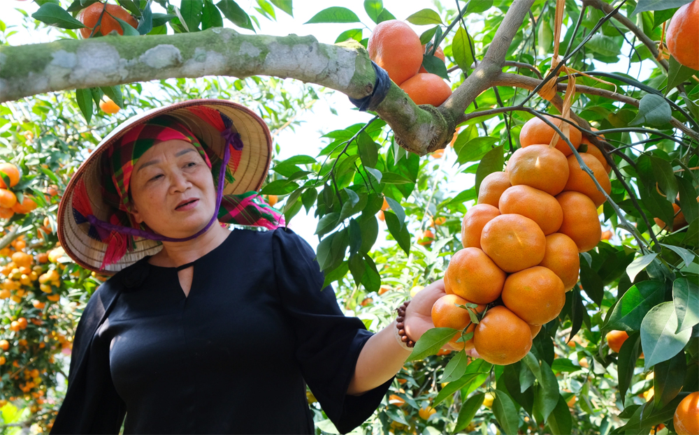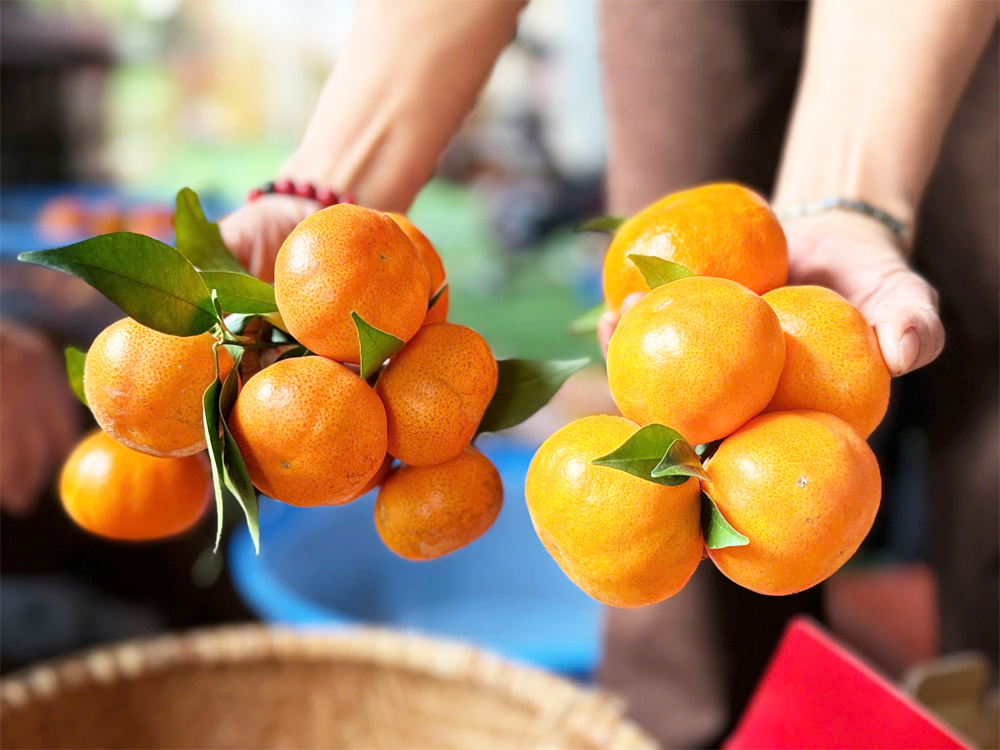 To support the heavy loads, Dung designed a system of sturdy bamboo poles and ropes for each tree to prevent branches from breaking under the weight of what visitors call “orange grape clusters”.