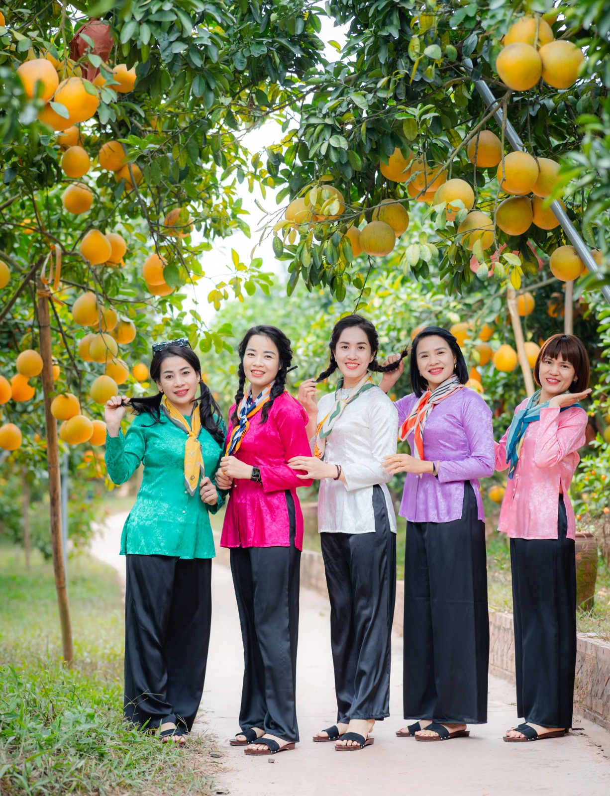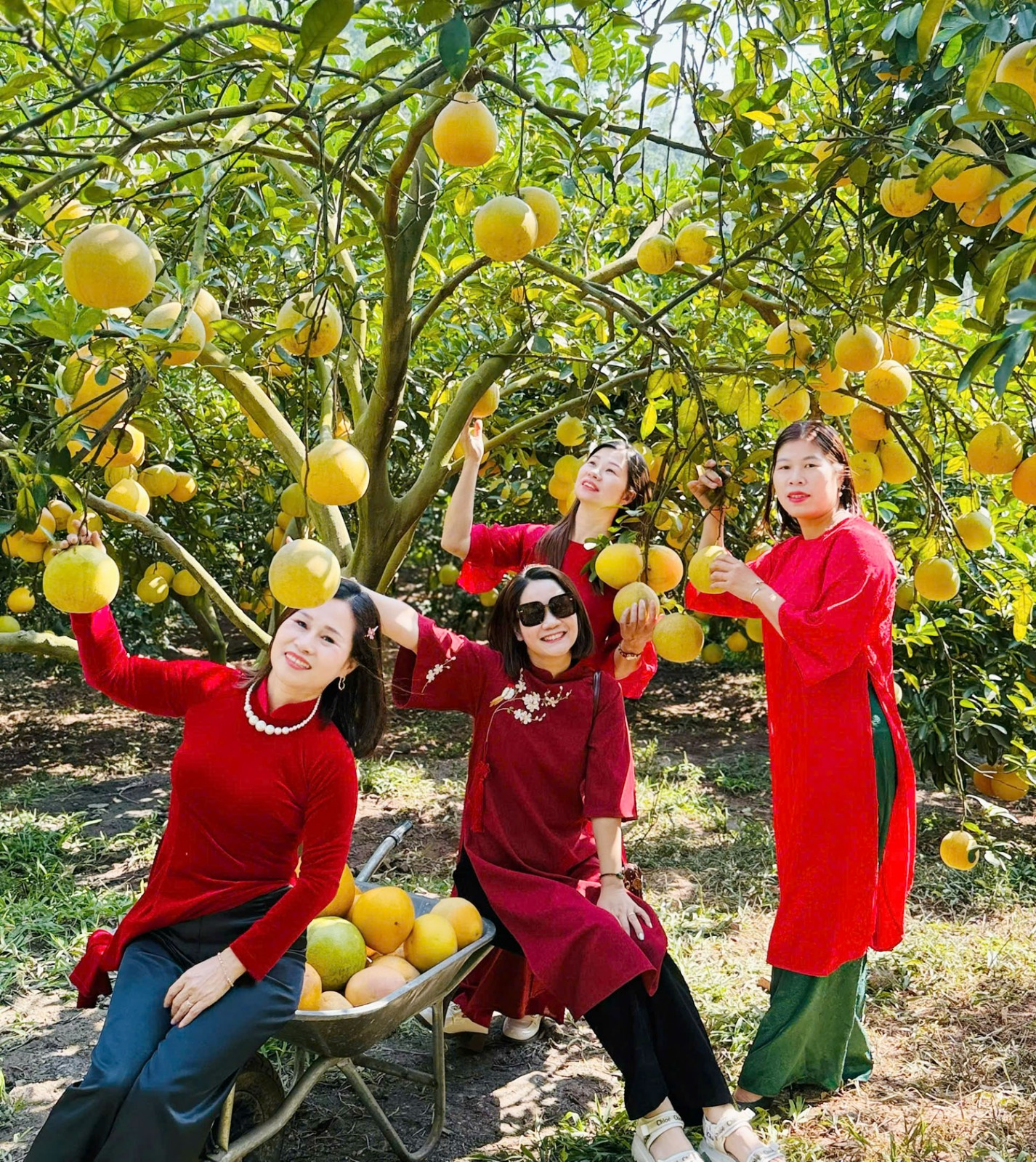 Du khách thỏa sức tạo dáng trong vườn bưởi.