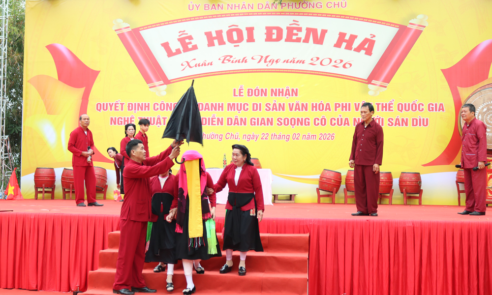 BAC NINH - On February 22 (the sixth day of the first lunar month), Chu Ward in Bac Ninh Province opened the 2026 Ha Temple Spring Festival and received an official decision recognising the Soong Co folk performance art of the San Diu ethnic group as a national intangible cultural heritage.