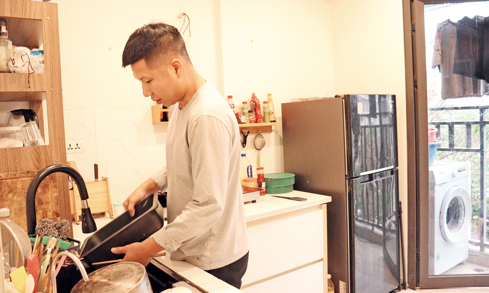 Vuong Thinh (from Thuan Thanh ward) prepares dinner in his 54 sq.m apartment in the social housing area of Yen Phong Industrial Park (Yen Phong commune). |
