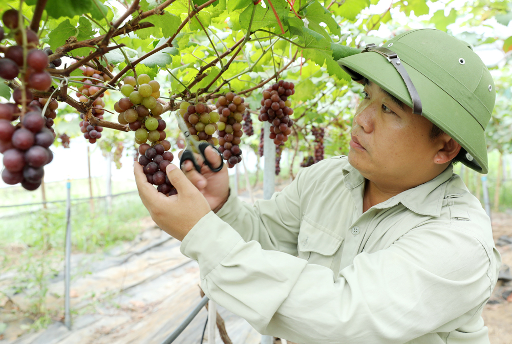 MSc Phung Duy Hieu takes care of Ha Den grapes.