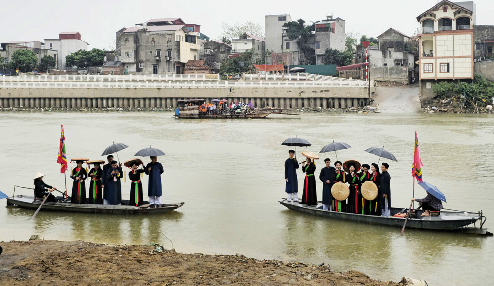 Performing Quan ho on boat on Cau river at Tho Ha festival. |
