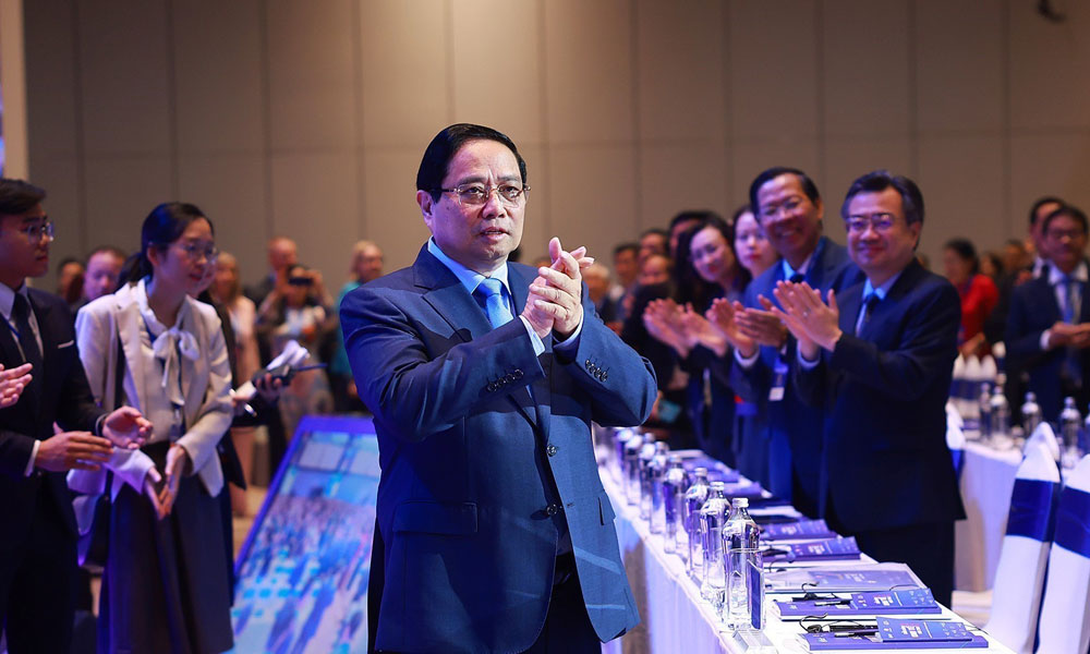 Thủ tướng khẳng định, sự hiện diện của các đại biểu Chính phủ, các doanh nghiệp, học giả và các tổ chức trong nước và quốc tế thể hiện ý chí và tinh thần hợp tác tích cực, khát vọng và động lực để chúng ta cùng nhau tạo nên những giá trị mới, kiến tạo một tương lai bền vững, bao trùm và nhân văn cho tất cả các quốc gia và cho mọi người.