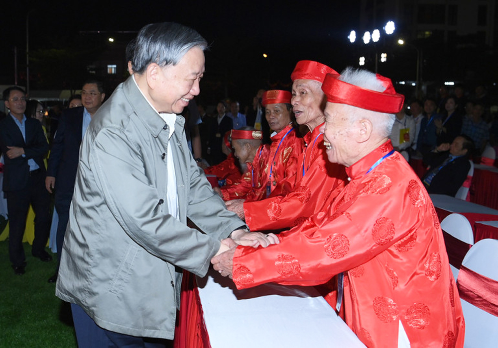Tổng Bí thư Tô Lâm thăm hỏi các bậc cao niên. (Ảnh: Báo Nhân dân) |