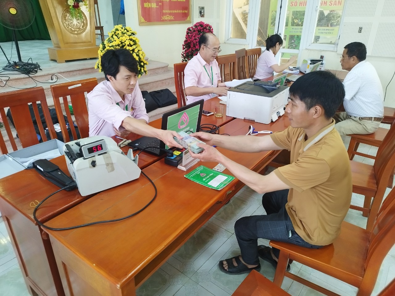Cán bộ Phòng giao dịch Ngân hàng chính sách xã hội huyện Lục Nam giải ngân vốn vay ưu đãi cho người dân.
