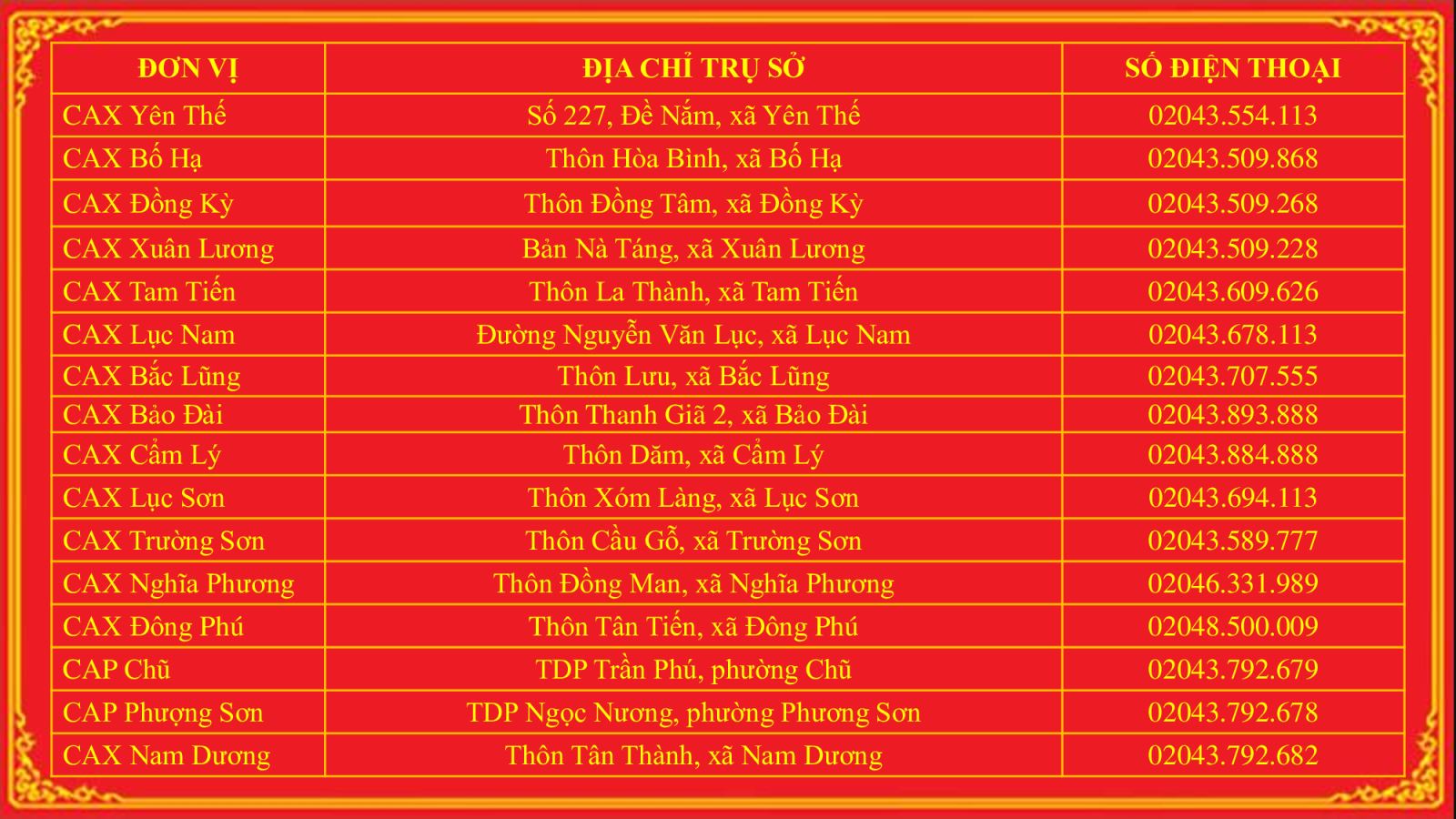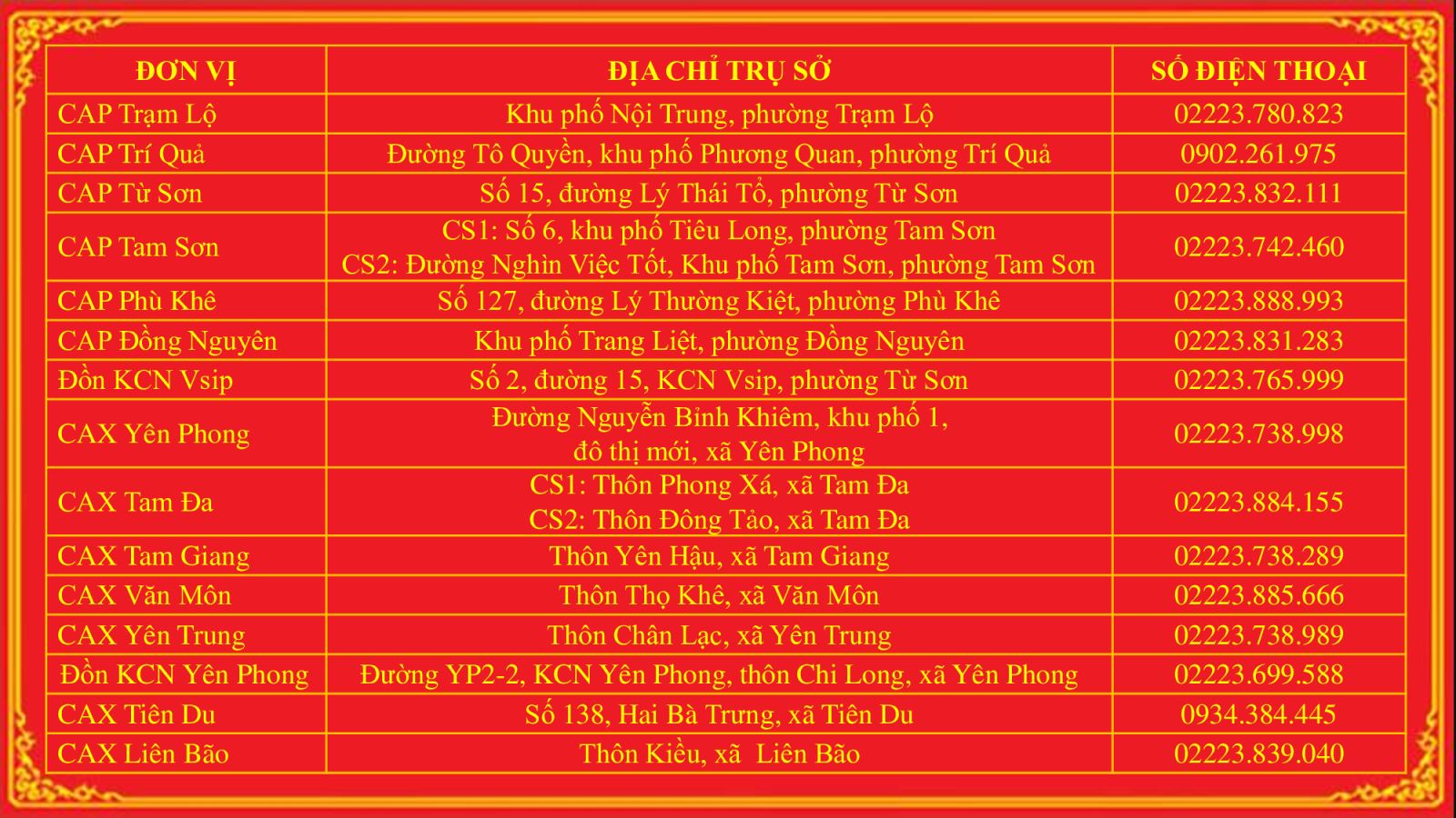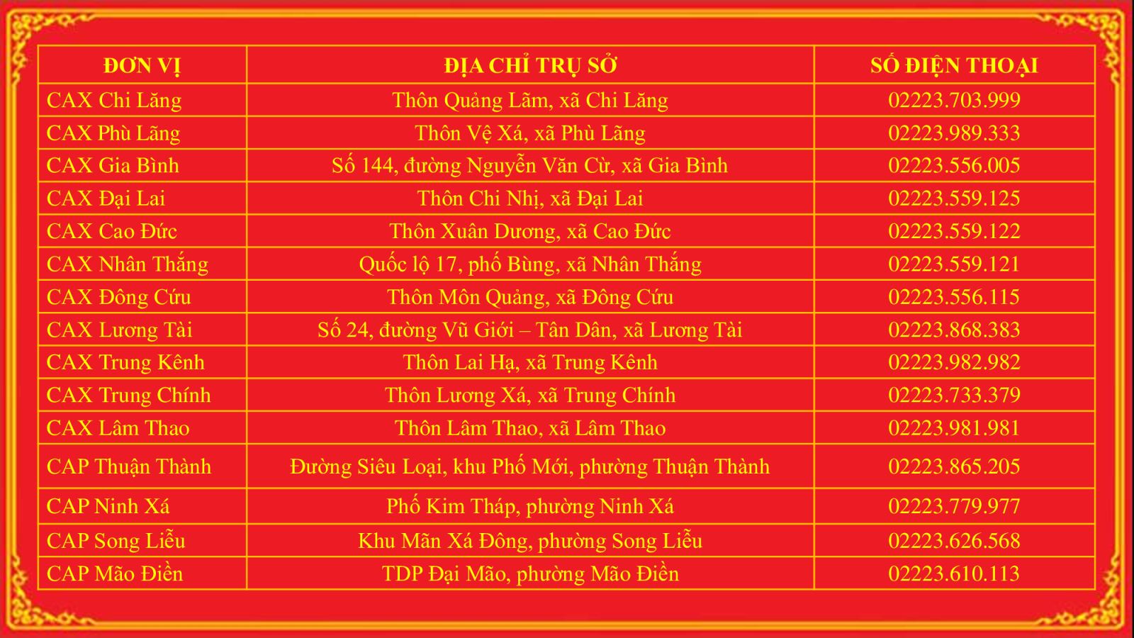 Trụ sở làm việc, điện thoại trực ban công an các đơn vị tỉnh Bắc Ninh