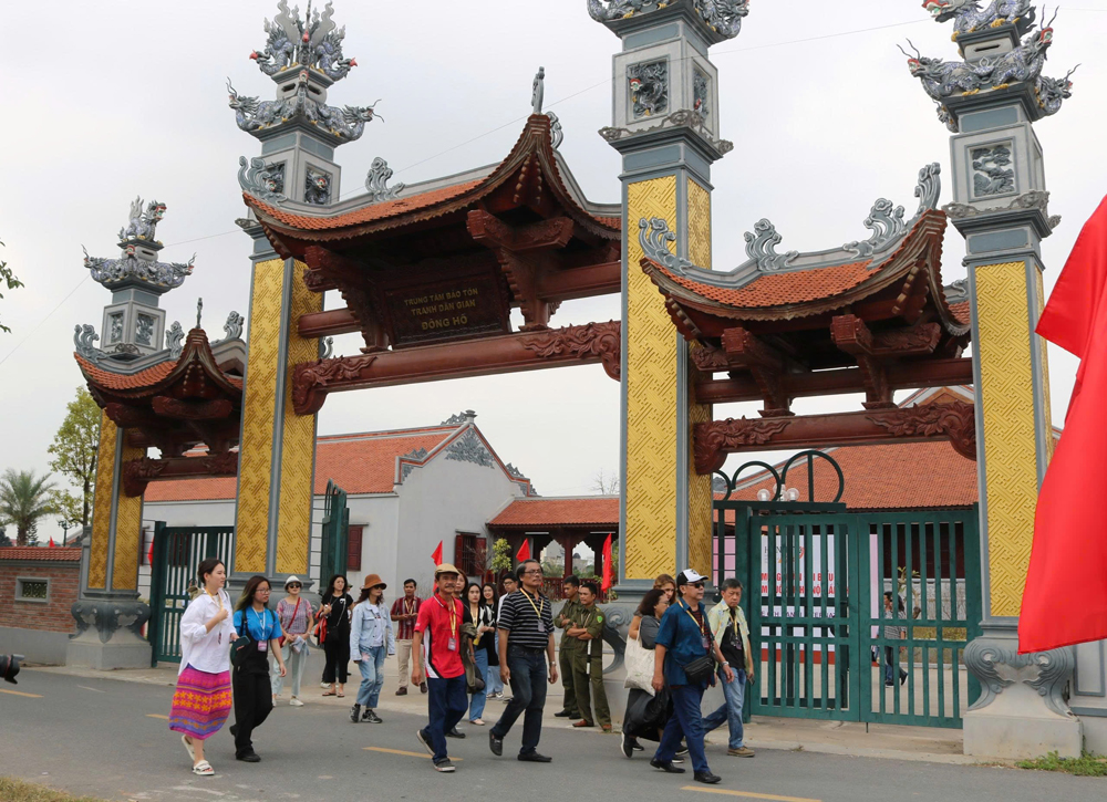International visitors experience woodblock printing at the Dong Ho Folk Painting Preservation Centre (Thuan Thanh ward). |