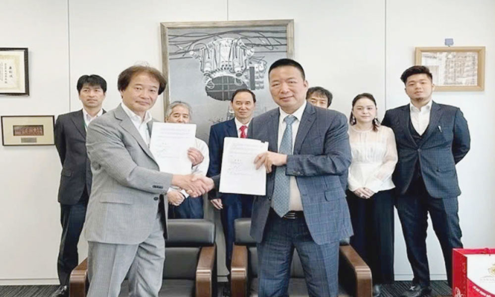 Leaders of Hanaka Group and Japan’s Takaoka Toko Company exchange the cooperation agreement. |