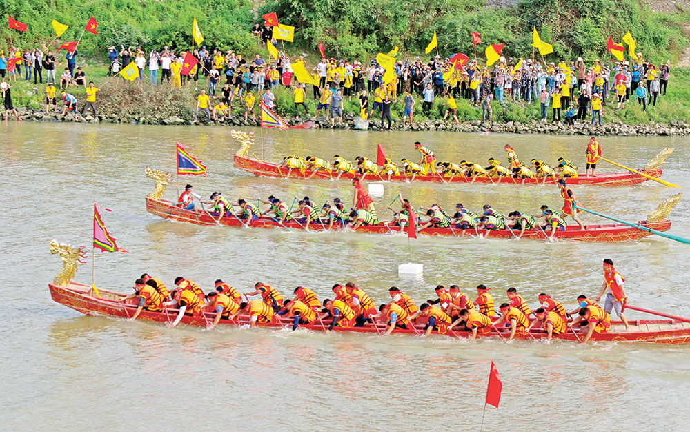 The Tieu Mai boat racing festival in Xuan Cam commune is held on the 10th day of the third lunar month, bringing vibrant competition to local waterways. |