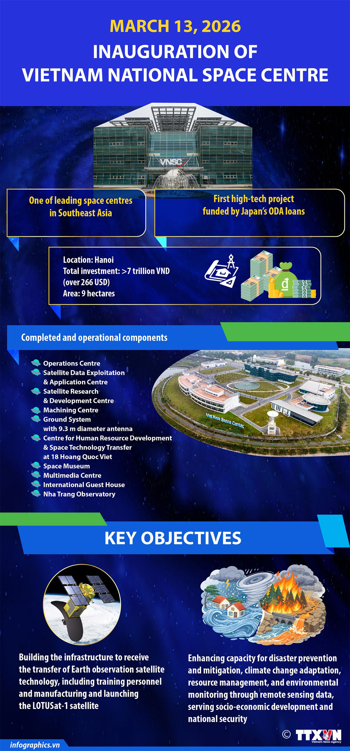 The recent inauguration of the Vietnam National Space Centre at Hoa Lac Hi-tech Park in Hanoi serves as one of the leading space centres in Southeast Asia. It is the first high-tech project funded by Japan’s ODA loans.
